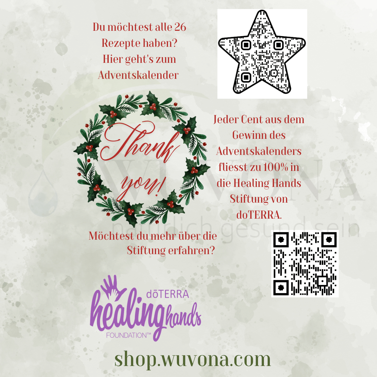 Lass dich von den wundervollen Abenteuern unseres frechen, aber herzlichen DoTTi verzaubern. Er begleitet dich mit kleinen Achtsamkeitsübungen und positiven Impulsen, damit du die festliche Zeit entspannt genießen kannst. Jedes Rezept enthält eine Rezept-Postkarte, die du an deine Liebsten verschicken kannst, um Freude zu schenken oder Danke zu sagen. Der gesamte Erlös unterstützt die doTERRA Healing Hands Stiftung.