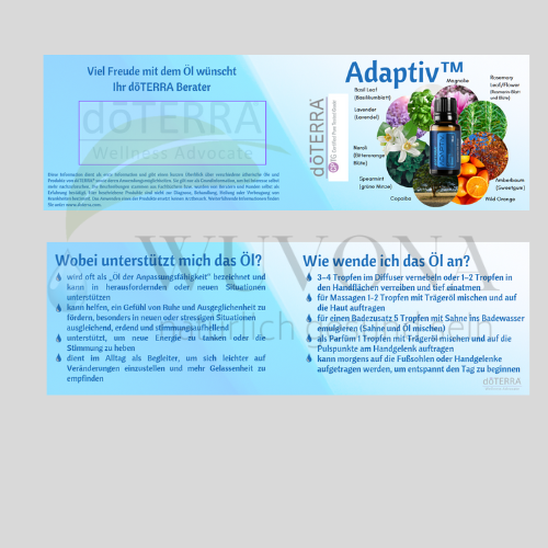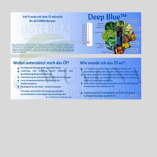 Liebe Berater, damit Eure Kunden schnell nachsehen können, welches Öl sie wie unterstützt gibt es jetzt unsere Samplekärtchen. Ihr erhaltet verschiedene Öle oder Mischungen. Füllt eine kleine Probe ab und gebt den Kunden das Kärtchen dazu. Es erleichtert Euren Kunden den Zugang zu den Ölen.